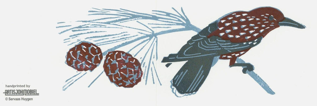Notenkraker, handgedrukte kaart